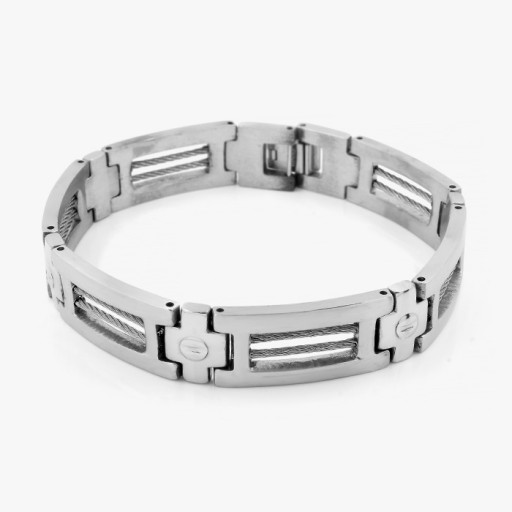 Элегантный и стильный браслет из нержавеющей стали станет эффектным акцентом в вашем образе. Серебристый цвет и современный дизайн с фактурными вставками придают аксессуару мужественность и сдержанный шарм.
